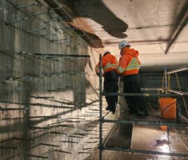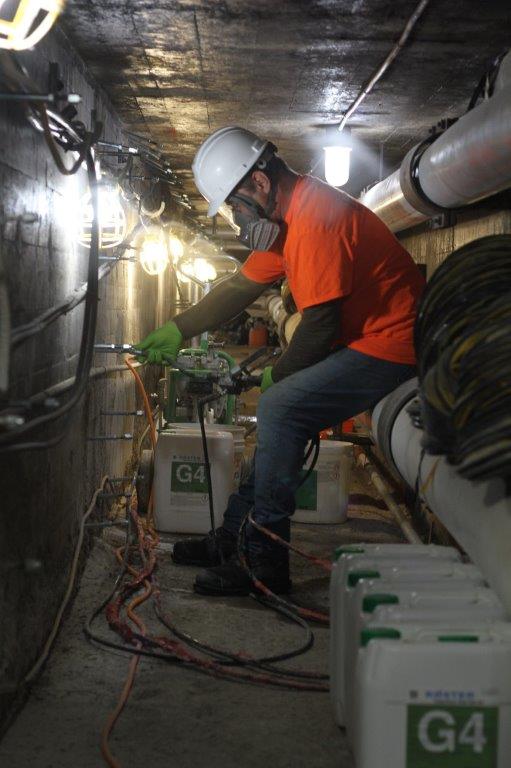 Gel (G4 & S4) and Koster NB1 Crystalline Coating; performing negative side waterproofing